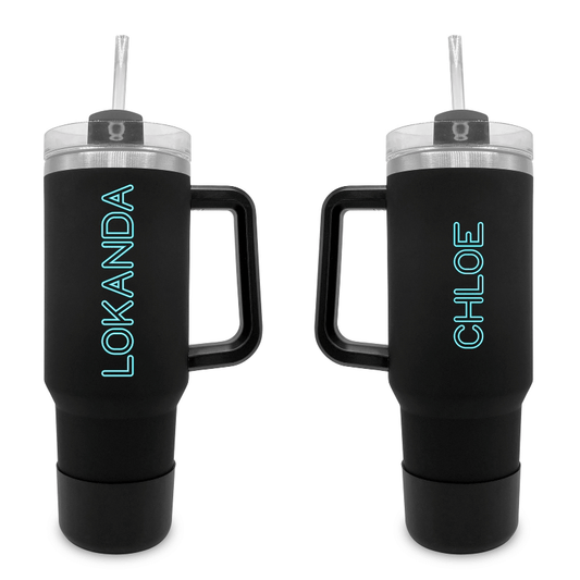 Neon- 40 oz. Black Tumbler with Handle