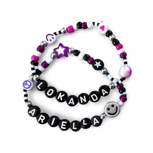Black & White Smile Seed Bead Camp Bracelets (Set of 2)