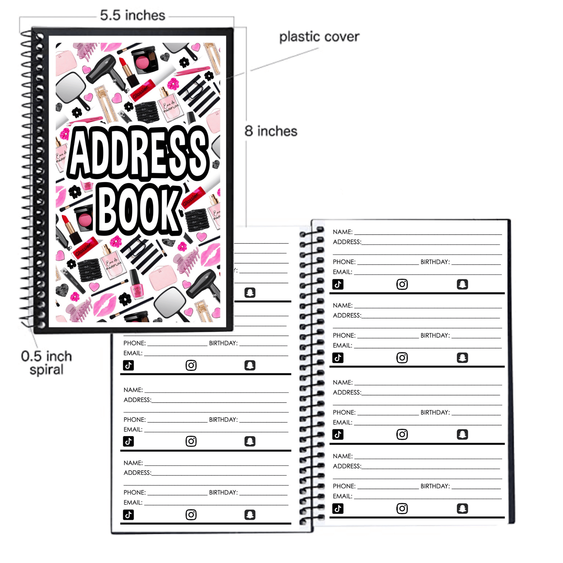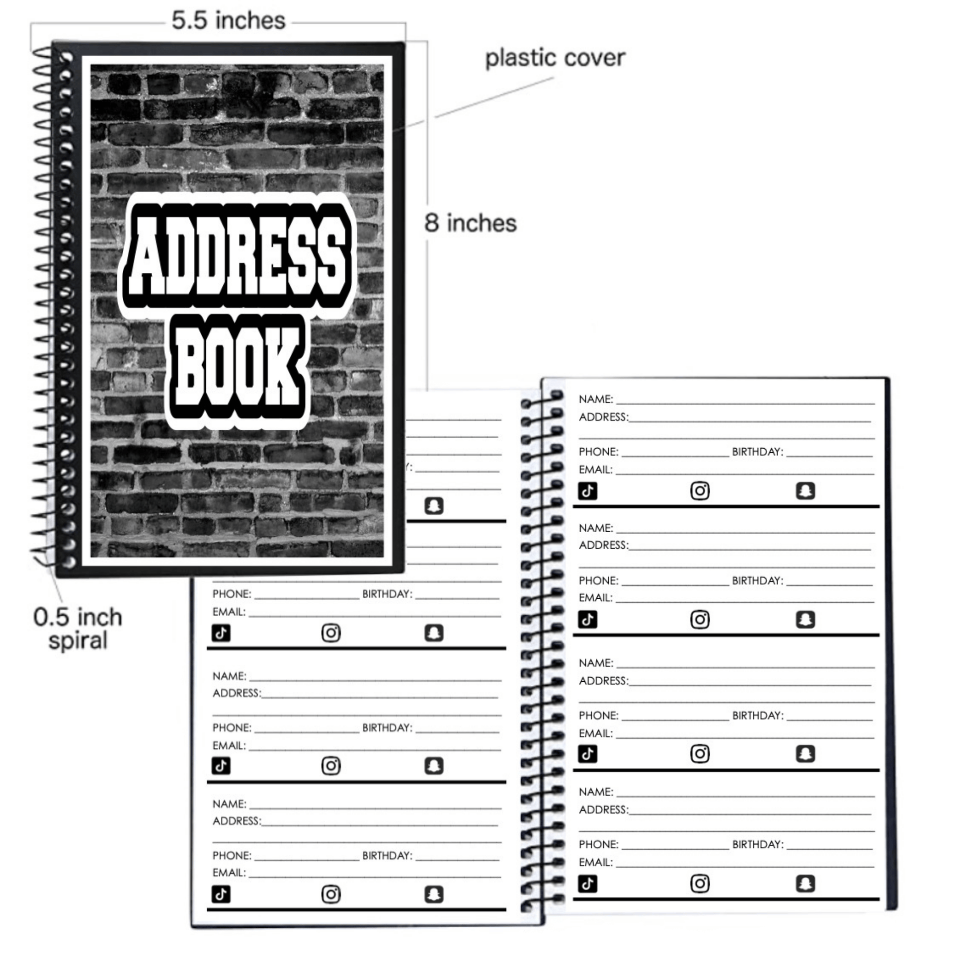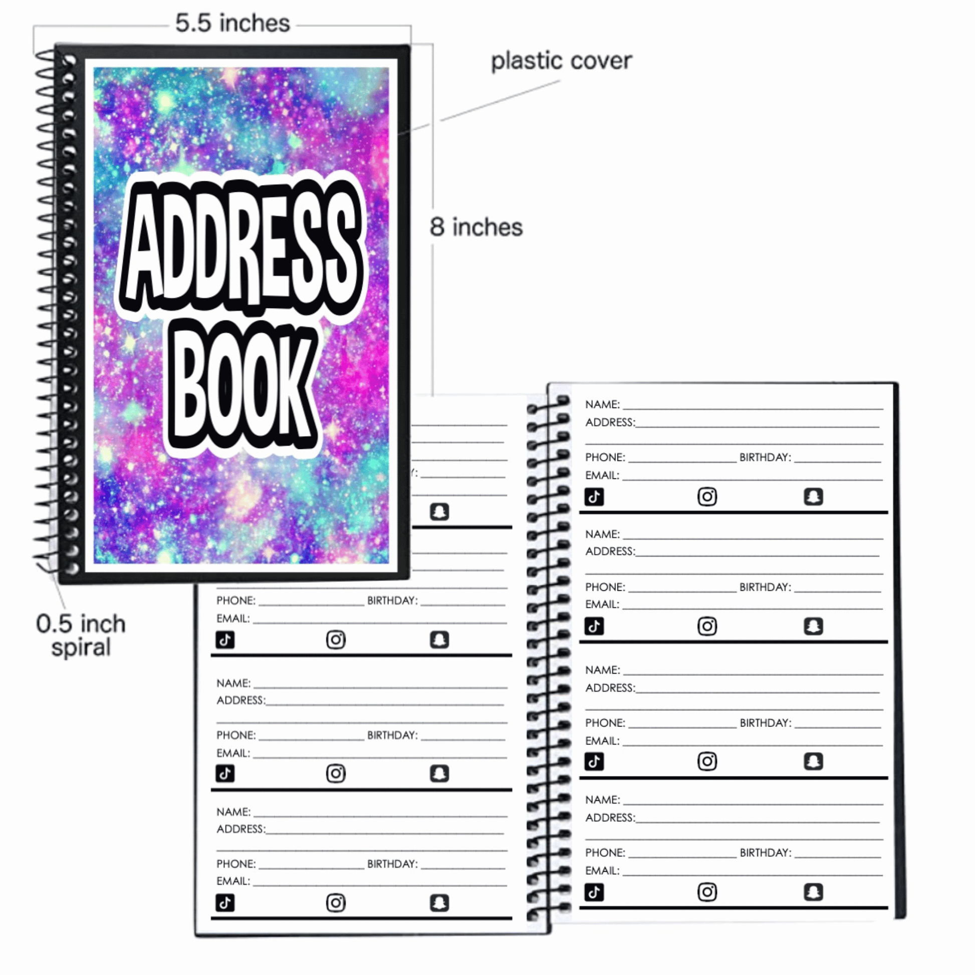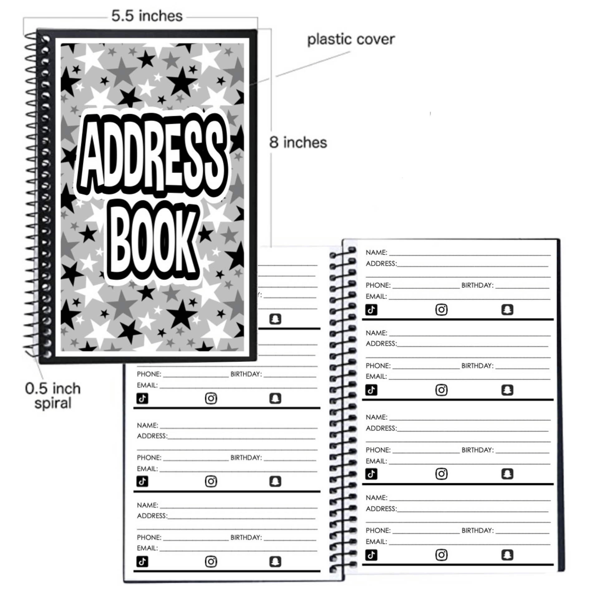 - plenty of pages with space for name, address, phone number, emails etc.