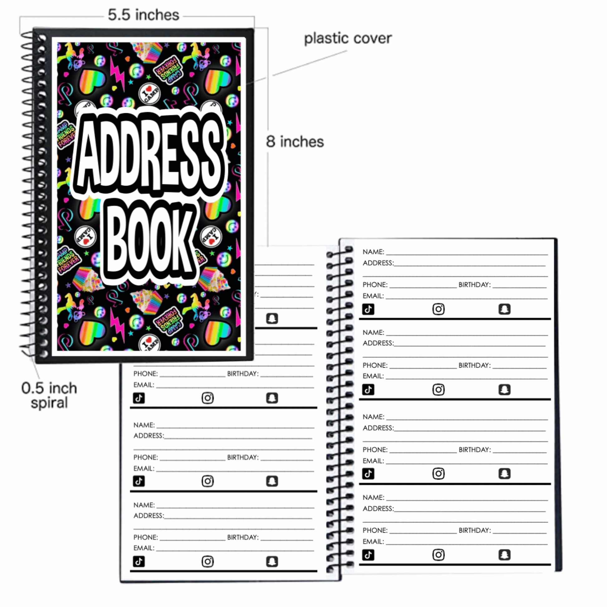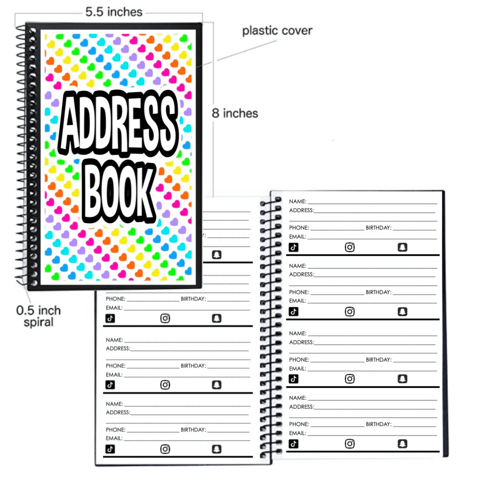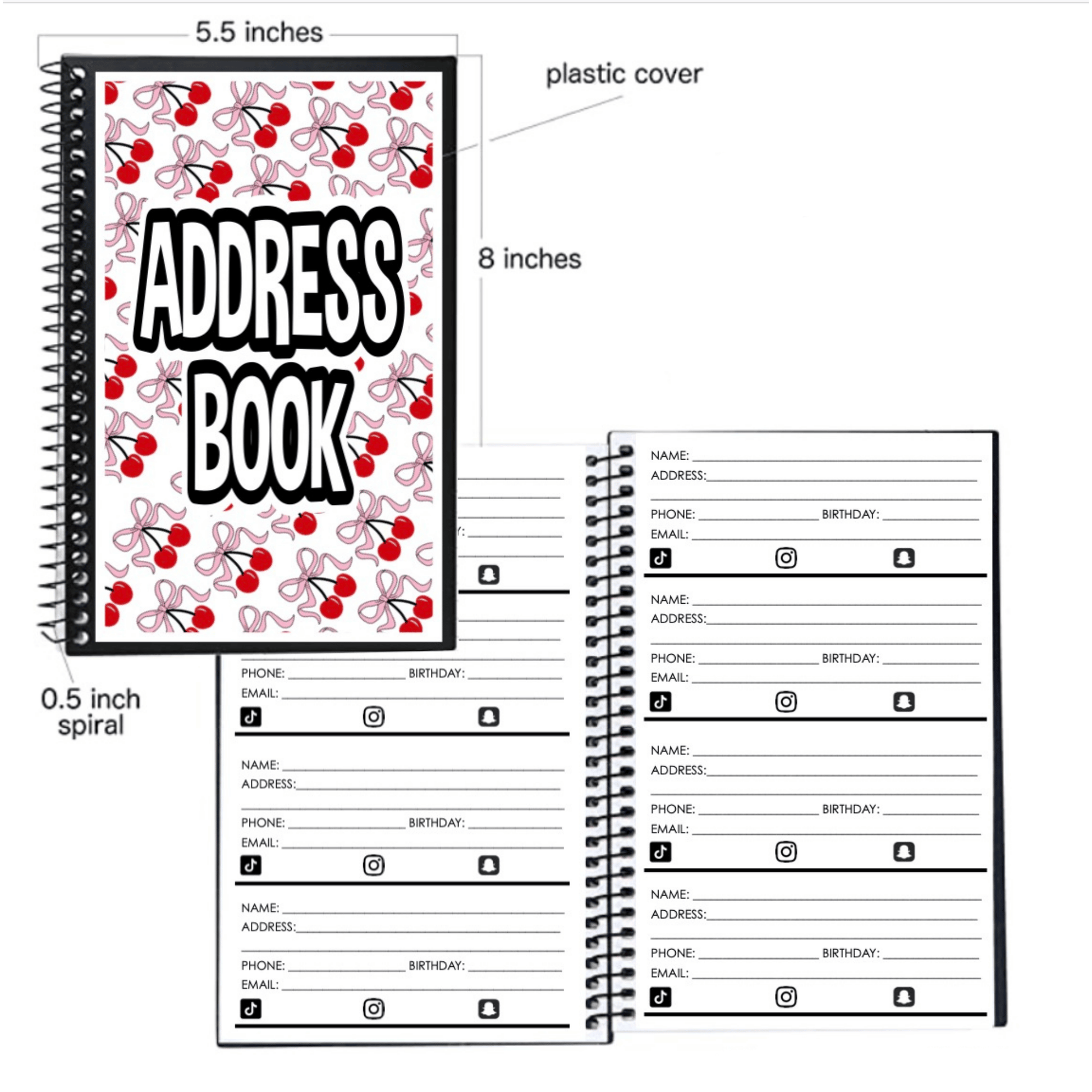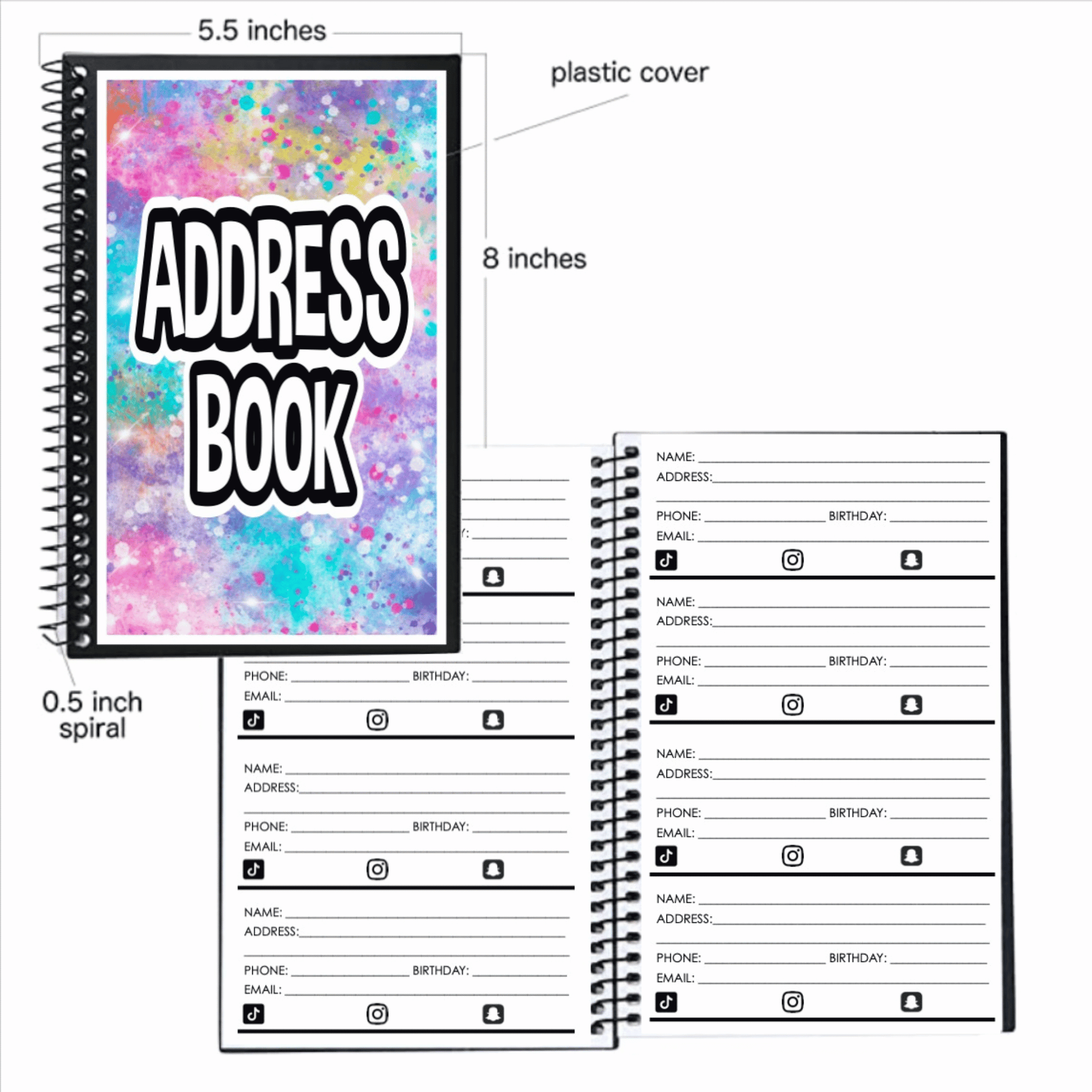 - plenty of pages with space for name, address, phone number, emails etc.